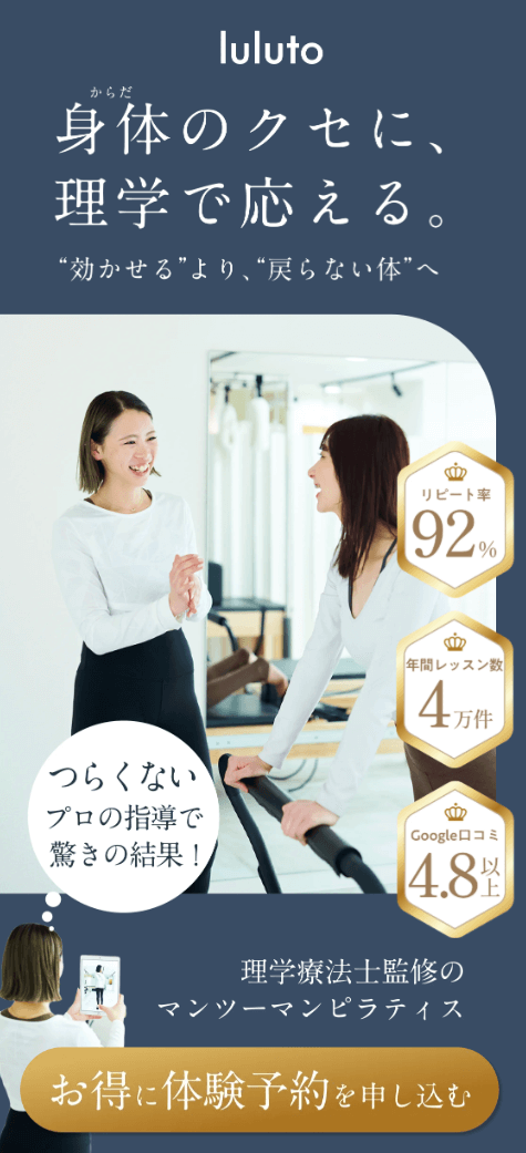 高い効果が期待でき、気持ち良く通える環境でマシンピラティスを楽しみたい方は、ぜひルルトで体験レッスンを受けてみてください。