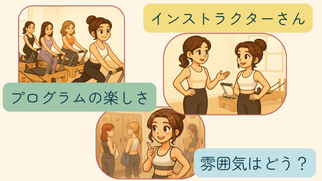 口コミでは「姿勢や体型が良くなった」「インストラクターが丁寧」「初心者も安心」などの喜びの声がたくさん!