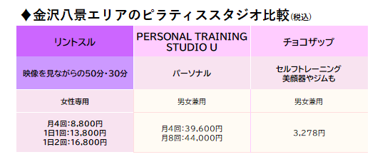 スターピラティスがいちばん安いですが、店舗が限られており、金沢八景付近にはありません…。