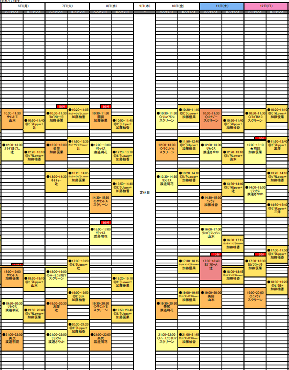 毎月15日に翌月分のスケジュールが公開されるので、その日にまとめて予約を取るのがコツ。