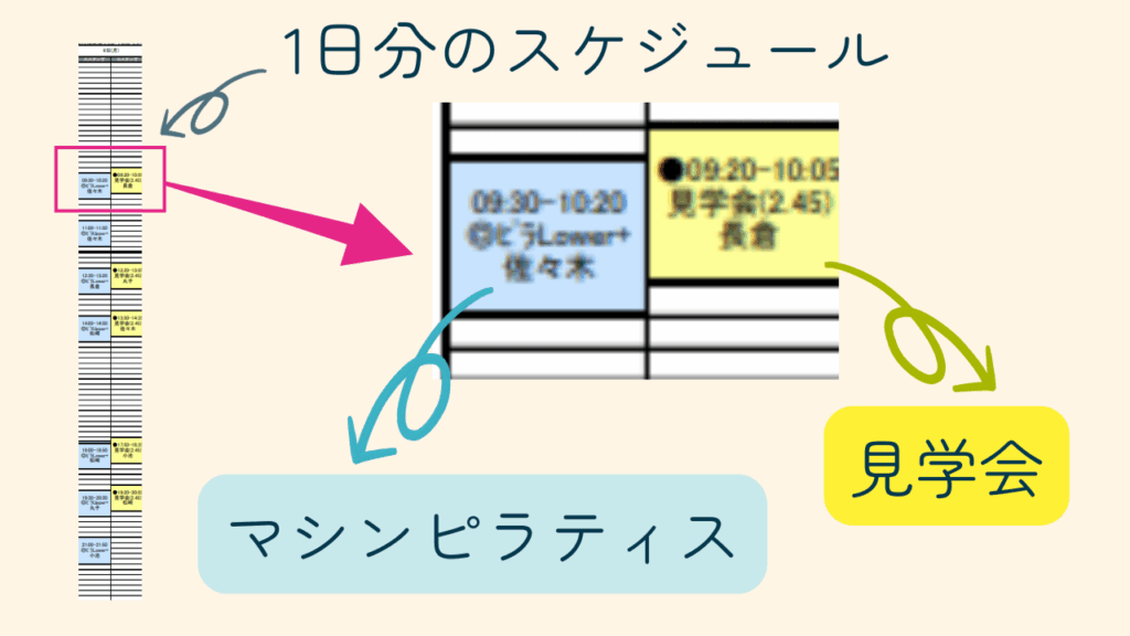 縦2列が1日のスケジュールで、黄色い所は見学会です。
