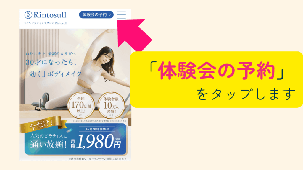STEP①:公式サイトから「体験会を予約する」をタップします。