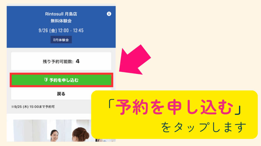 リントスルの体験会へはウエブから簡単に申し込みができます。